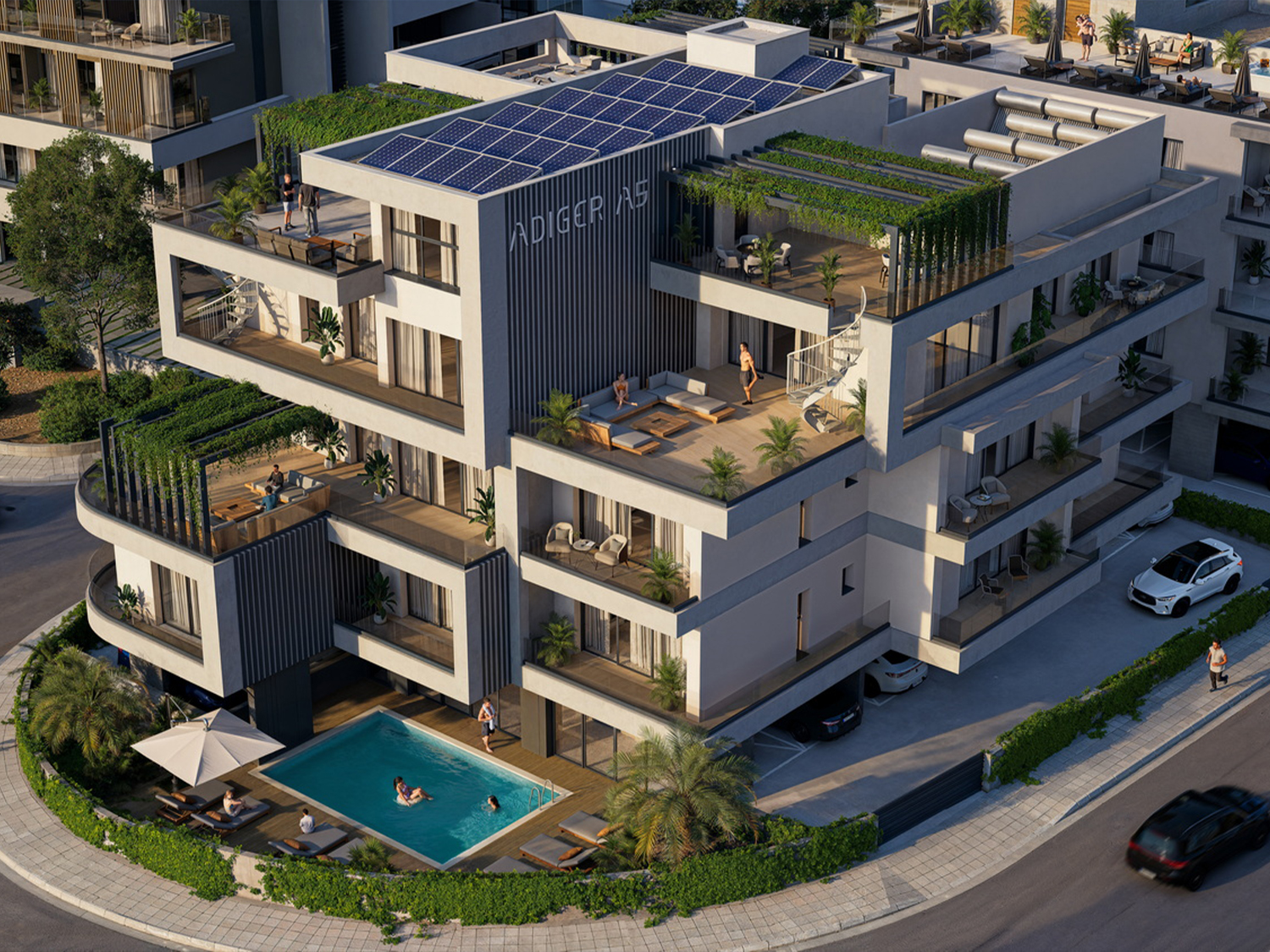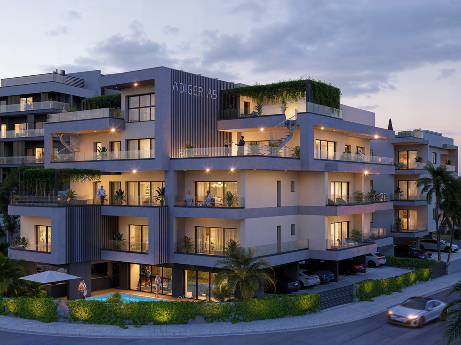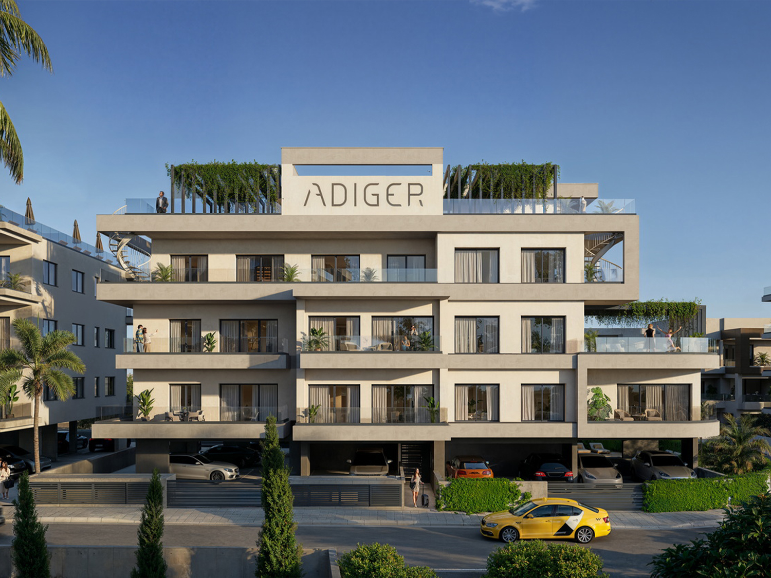 This exquisite complex consists of low-rise buildings with parking and an entrance area & swimming pool on the ground floor, as well as four residential floors with one, two and three-bedroom apartment with a roof terrace & roof garden cozy apartments.
